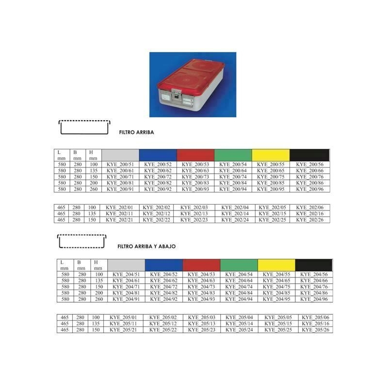 Contenedor plata para esterilización, con filtro arriba. Disponible la tapa en varios colores.