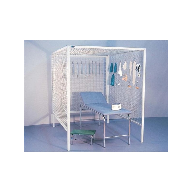 Jaula de poleoterapia con estructura formada por paneles metálicos unidos entre sí, provista de malla ondulada.