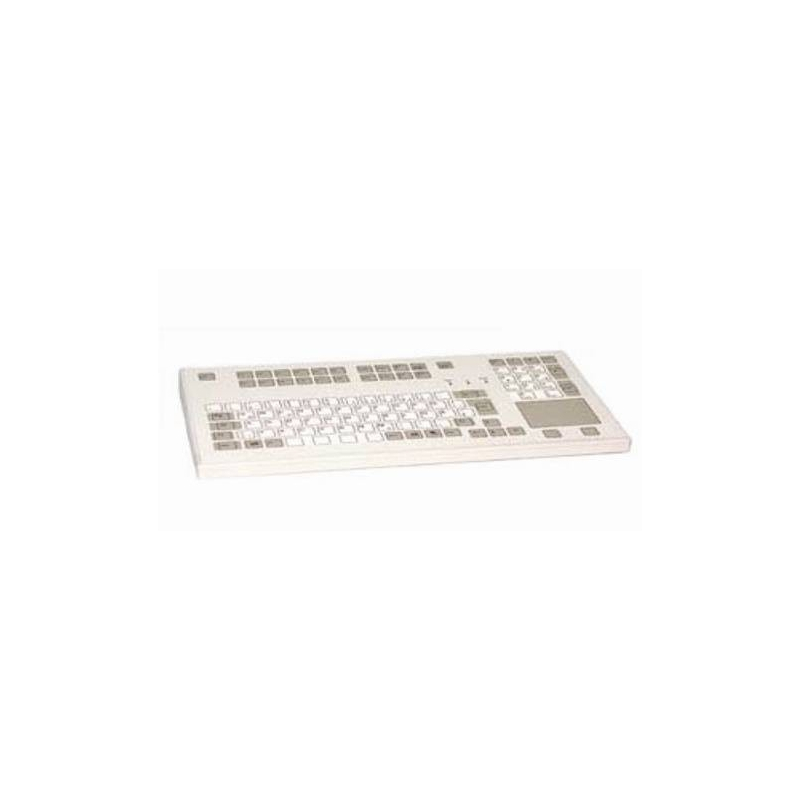 Características Teclado Médico Compacto con Ratón IntegradoTecnología ABAK® - Lacado Químico Resistente con Propiedades Antibacterias Carcasa Especial Resistente a Desinfectantes Certificación IP65 Total Certificaciones Médicas (EN60601-1-2:2001 Medical) Teclas con Película Protectora y Borde en Relieve / Ratón Integrado Certificaciones Médicas (EN60601-1-2:2001 Medical)