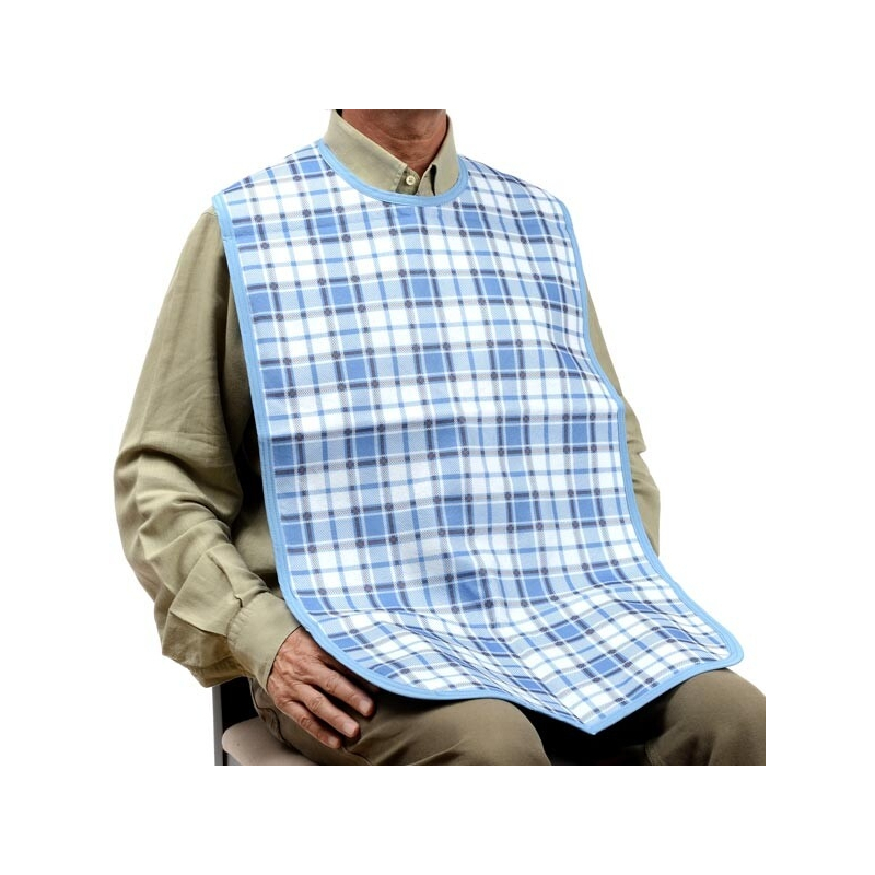 El babero de cuadros largo e impermeable es un accesorio de uso diario para adultos con ciertas dificultades para comer. Gracias a su impermeabilidad es capaz de absorber grandes cantidades de líquidos (hasta 800 ml) y proteger al paciente de posibles quemaduras o accidentes.