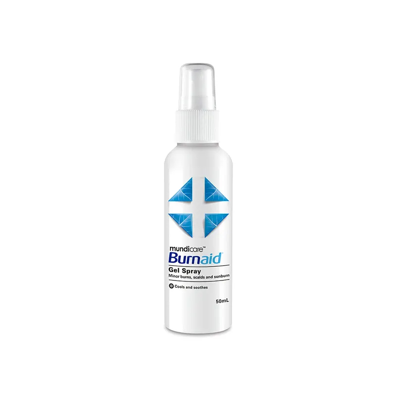 BurnAid gel spray , para tratamiento de primeros auxilios para quemaduras menores, indicado para su uso inmediatamente después de las quemaduras.