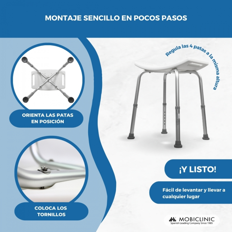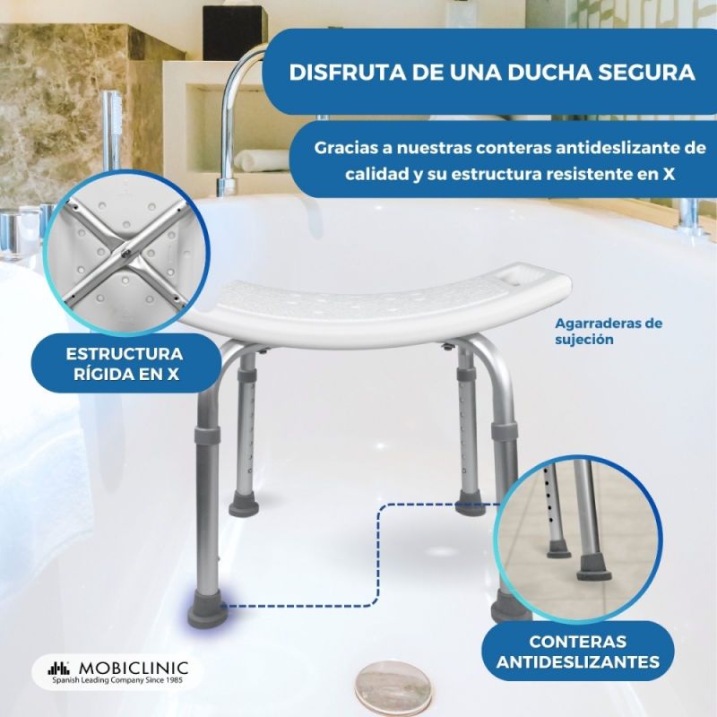 Silla de ducha | Aluminio | Regulable en altura | Conteras antideslizantes | San Fermín | Mobiclinic