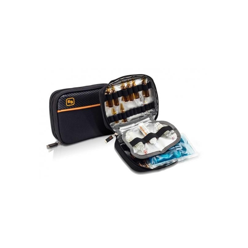 Gracias a su estuche interior podrás conservar y proteger productos líquidos de forma correcta y sin tener que preocuparte de roturas o aperturas. Las gomas elásticas de su interior hacen que el material sanitario esté totalmente sujeto.