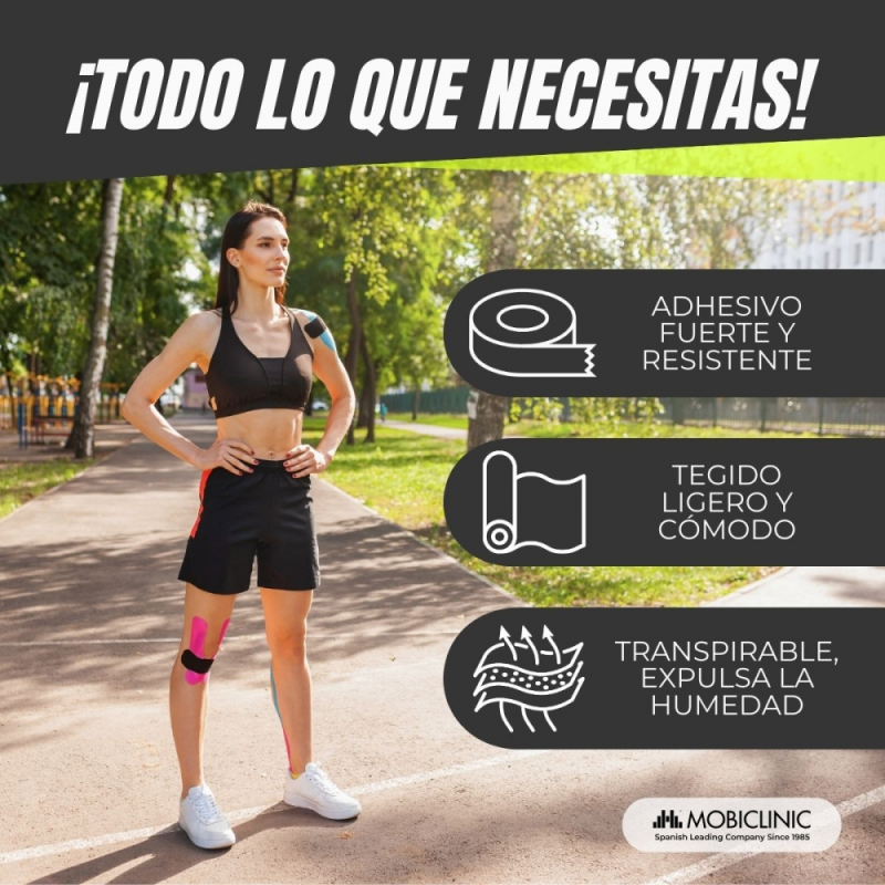 neuromuscular hace que se adapte a la perfección a la piel. También es ideal para deportistas, debido a sus diferentes modalidades de aplicación y que permite una movilidad completa. Puede utilizarse durante varios días y ofrece soluciones preventivas, terapéuticas y mejora el rendimiento deportivo.