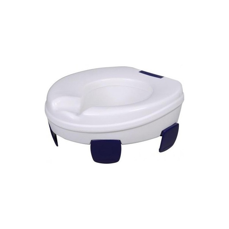 Su sistema de fijación, fácil y estable, da seguridad al usuario a la hora de usarlo ya que con los 4 clips evita que se mueva. Es muy simple su uso, simplemente hay que apretar los 4 clips, una vez el elevador puesto en el inodoro. Su recorte delantero proporciona fácil acceso para la higiene personal. Permite subir la taza del inodoro de 11 cm.