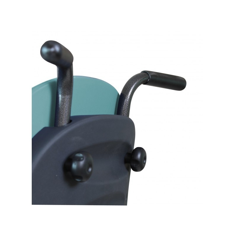 Su asiento acolchado con una espuma de 5 cm lo hacen cómodo para el usuario. Éste si fija con un sistema de clips que permiten quitarlo fácilmente y agilizar su limpieza. También el cubo ofrece la posibilidad de extraerse tanto por los lados como por arriba. El modelo Best Up dispone de reposabrazos abatibles y reposapiés plegable para facilitar la transferencia de los pacientes con seguridad. Incluso, cuenta con frenos en dos de sus cuatro ruedas.