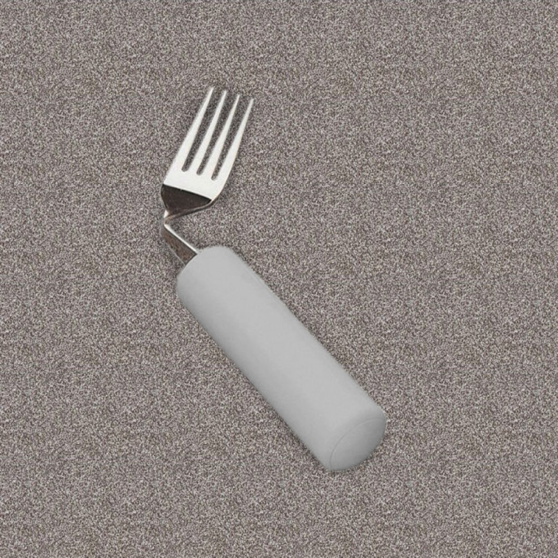 Cubierto con el mango ligero de espuma, angulado con 40º. Este tenedor especial viene montado en mango de plástico, es de contornos suaves y sellados de forma higiénica. Permite a las personas con movimientos limitados de la mano tener cierta independencia a la hora de comer.