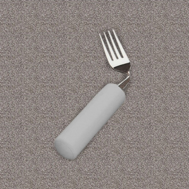 Cubierto con el mango ligero de espuma, angulado con 40º. Este tenedor especial viene montado en mango de plástico, es de contornos suaves y sellados de forma higiénica. Permite a las personas con movimientos limitados de la mano tener cierta independencia a la hora de comer.