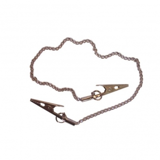 Este colocador de babero puede presentarse como: cadena porta servilletas de látex 35 cm o cadena porta servilletas de metal 35cm. Tiene dos pinzas clips (mosquetones de metal) que sujetan el babero o servilleta desechable.