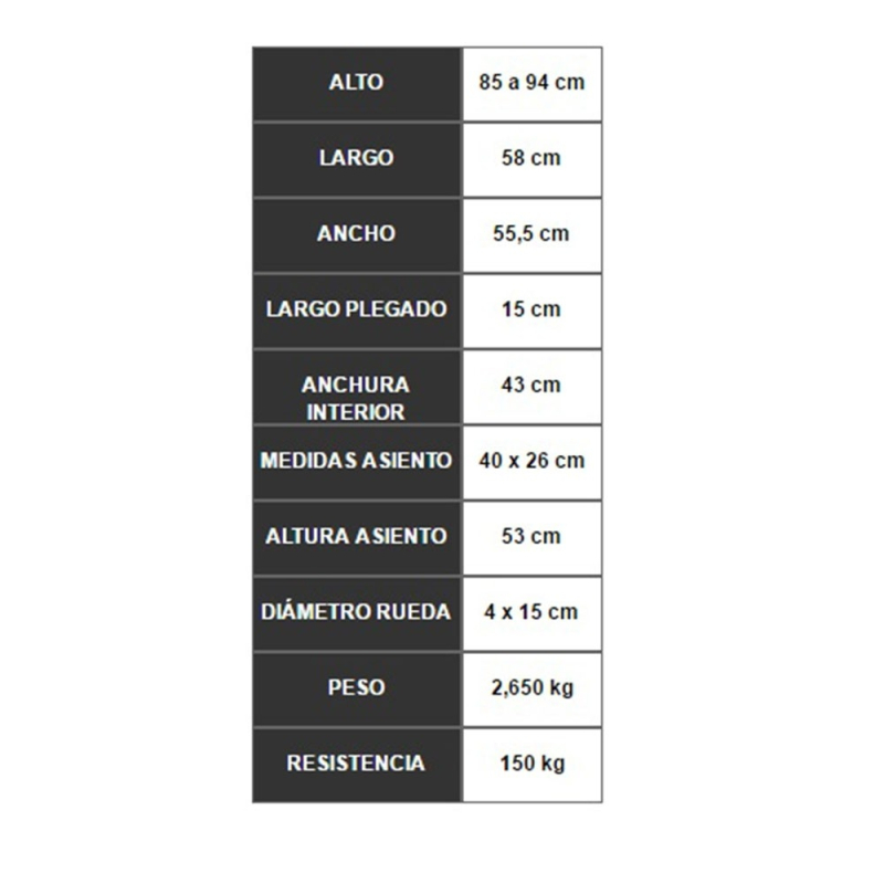 | Alto total | 85-94cm |