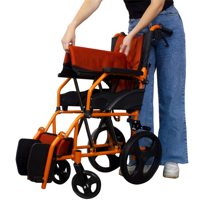 Silla de ruedas | Plegable | Aluminio | Freno en manetas | Reposapiés | Reposabrazos | Naranja | Pirámide | Mobiclinic