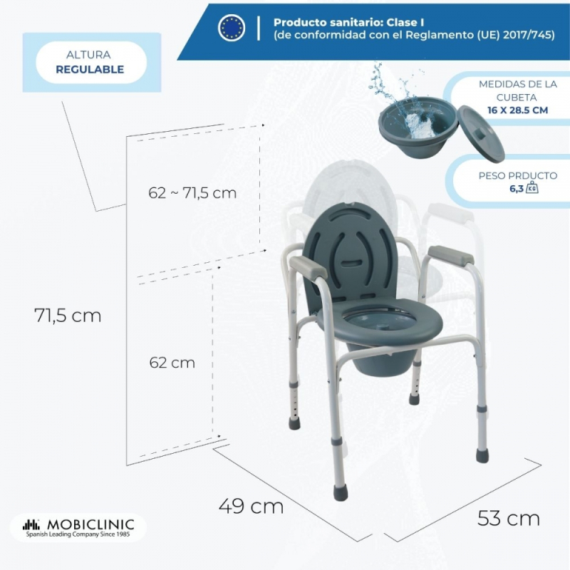 Silla WC | Con tapa | Altura regulable | Reposabrazos | Conteras antideslizantes | Arroyo | Mobiclinic
