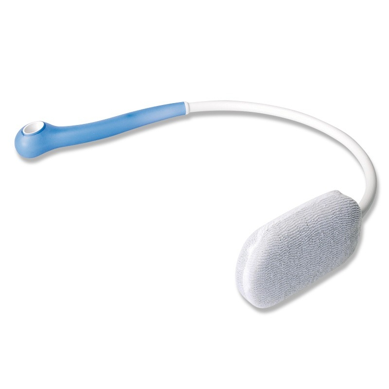 Esponja de secado con mango ergonómico diseñado para alcanzar todo el cuerpo. Tiene forma curva y equilibrada, lo que proporciona la máxima fuerza ejerciendo el mínimo esfuerzo y presión en manos, brazos y espalda. Además, cuenta con un mango ovalado con una superficie cuya textura proporciona un buen agarre.