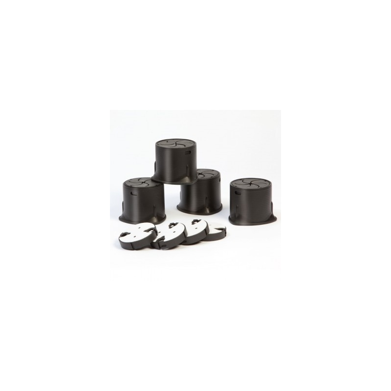 Los elevadores "Multi Raiser" consisten en un juego de 4 elevadores de mobiliario para sillas, butacas, sofás y camas que aguantan hasta 700 kg. Se adaptan a cualquier tipo de mobiliario, ya sea con ruedas, con patas (de hasta 7 cm de diámetro) o a muebles modernos sin patas, utilizando los adaptadores adhesivos incluidos. Estos elevadores se regulan con un simple giro para que su altura varíe entre 3,8 y 10 cm. Para una correcta instalación, hay que elevar cada punto de contacto del mueble con el suelo todos al mismo nivel. Tenga cuidado en no elevar los muebles demasiado, ya que podrían resultar incómodos.