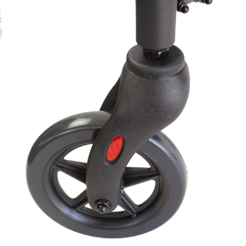 La estructura de aluminio de este andador para mayores es de una excelente resistencia y ligereza y sus 4 ruedas están diseñadas para superar cómodamente los pequeños obstáculos del firme tanto en interiores como exteriores. Y con sus prácticos frenos por presión no tendrá ningún problema para disminuir la velocidad.