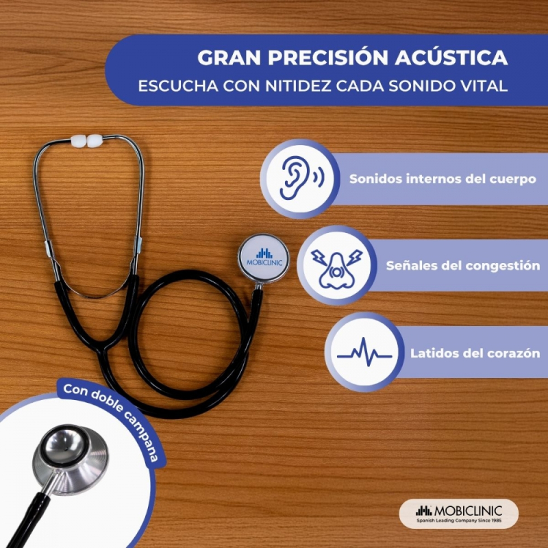 Fonendoscopio doble campana | Aluminio | Negro | Mobiclinic