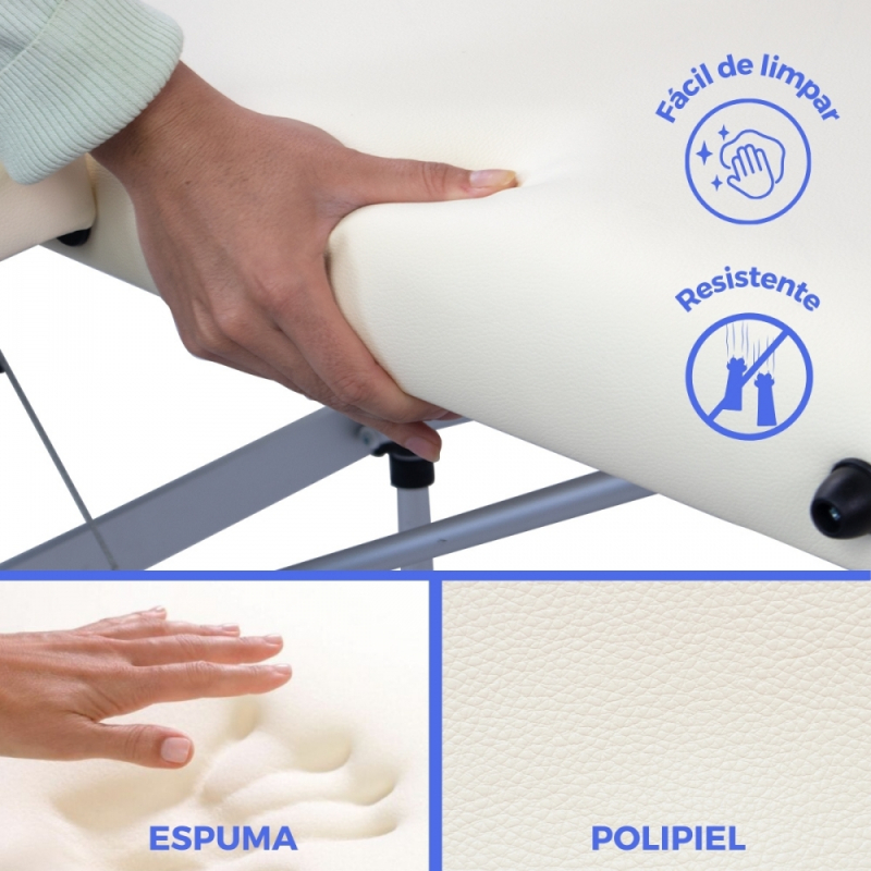 La camilla de masajes es regulable en altura a través de las patas, habiendo varios niveles para adecuarlo al que te resulte más cómodo.