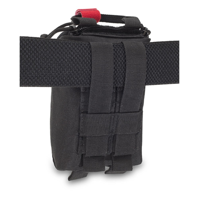 ADAPTABLE: dispone de un pasador para colocarlo en el cinturón. Además, en la parte trasera cuenta con sistema MOLLE, que permite el anclaje del botiquín a otros bolsillos, bolsas o chalecos.