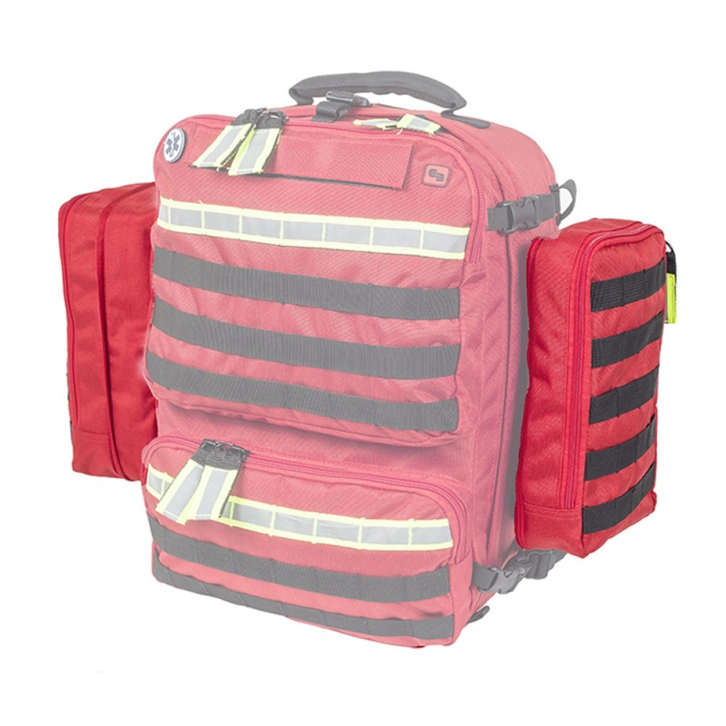 POCKETS Bolsillos laterales molle para el parameds, 1000D Polyester rojo Este par de bolsillos auxiliares puede acoplarse a cualquier artículo con sistema molle, como por ejemplo a la mochila táctico sanitaria de rescate PARAMEDS, otorgando una capacidad extra para material auxiliar. Características Fabricados en 1000D poliamida lavable, cuentan en su parte inferior con una cremallera tipo fuelle que puede abrirse en caso de necesitar ampliar su capacidad.