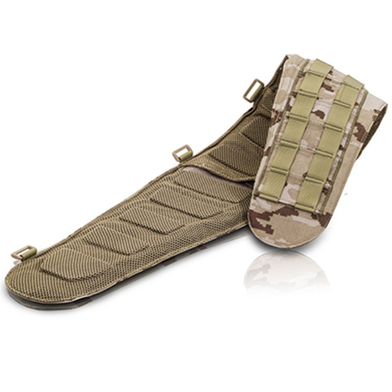 "Funda cinturón molle Funda molle de cinturón de primera línea de combate, puede blindarse con panel nivel IIIA. Para anclar el equipo básico del combatiente sea cual sea la misión o la situación. Disponible en tres versiones y tallas."