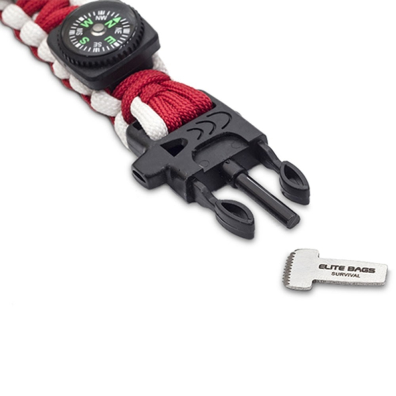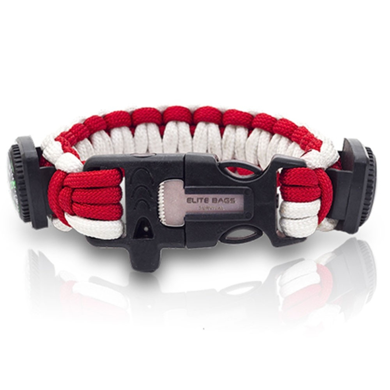 Brazalete de supervivencia | Con aplicaciones de emergencias | Fluorescente | Rojo y blanco | Wrist's | Elite Bags
