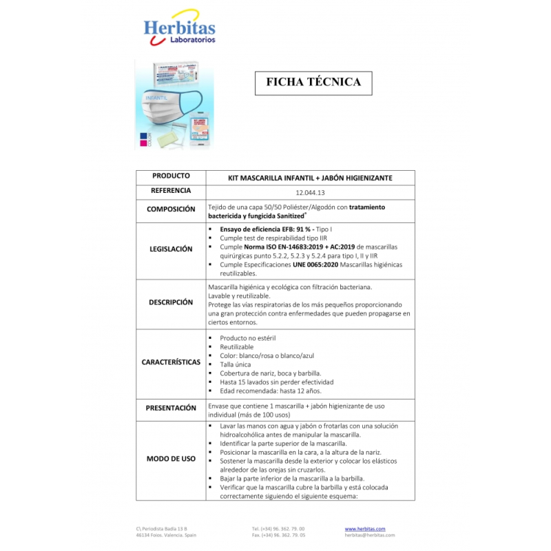 KIT HIGIENE: El envase viene compuesto por una mascarilla y un jabón higienizante de uso individual (más de 100 usos). Medida jabón: 4,8 cm x 3,2 cm x 0,7 cm.