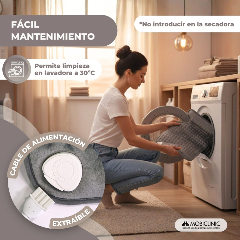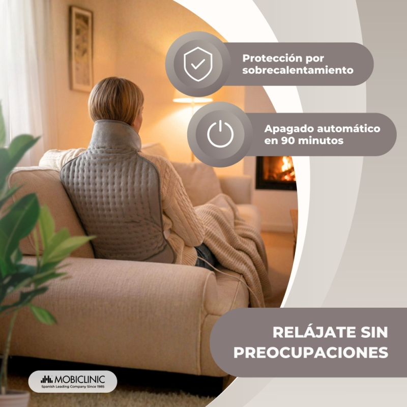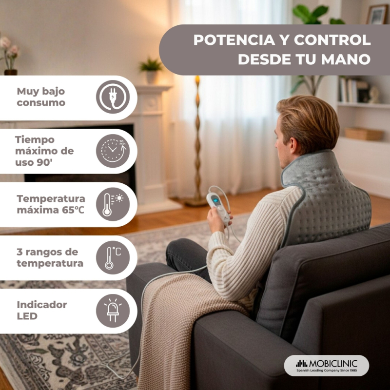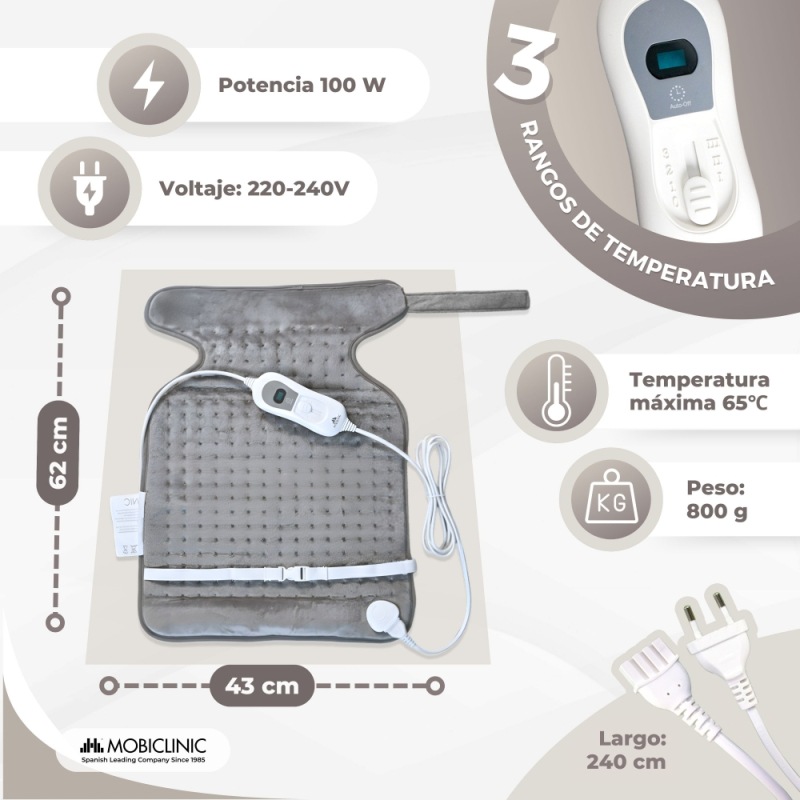 Almohadilla eléctrica dorsal cervical | 62x43cm | 3 niveles | Muy bajo consumo | Gasto mínimo | Apagado automático | Mobiclinic