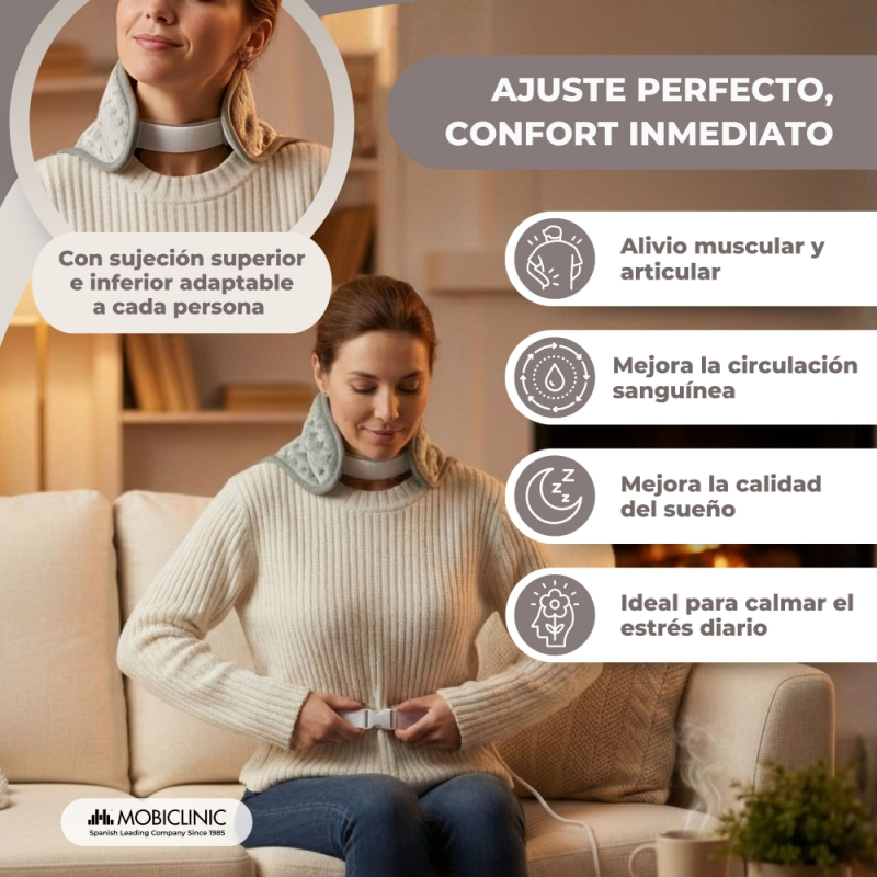 Respuesta: Buenas, Este producto no da calor directamente en el cuello, ya que no es recomendable el calor directo en esta zona. El producto, da calor en la parte de la espalda que irradia hacia el cuello. Esperamos haber resuelto su duda. ¡Qué tenga un buen día! | |