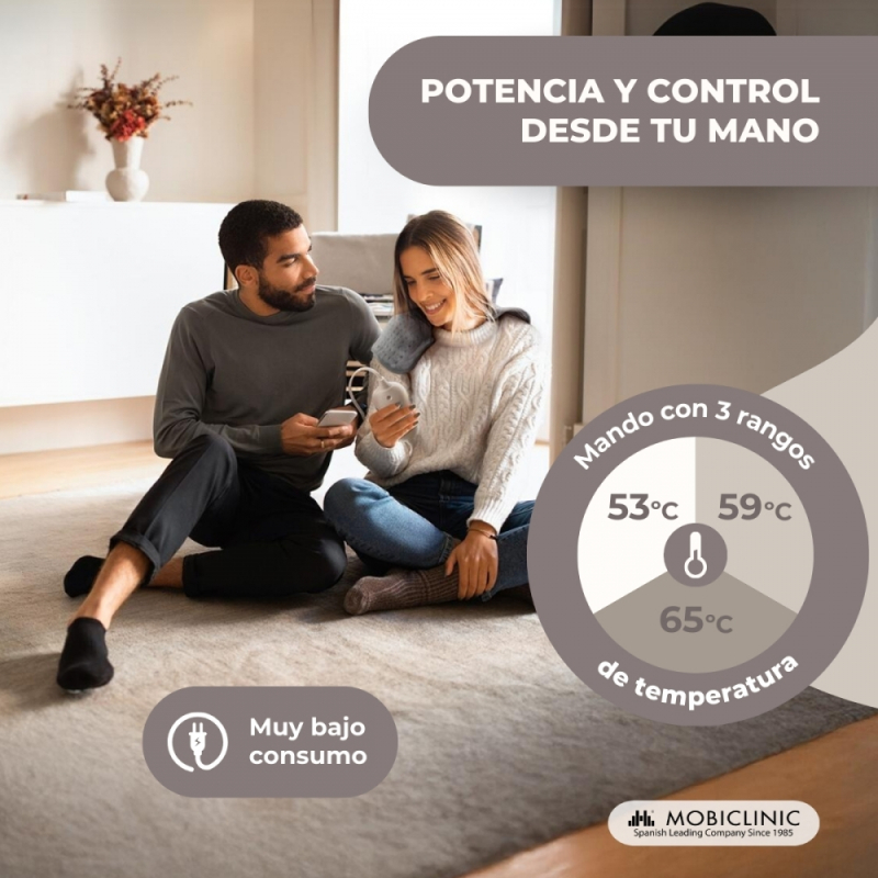 Almohadilla eléctrica | 40x30 cm | 3 niveles de calor | Muy bajo consumo | Gasto mínimo | Apagado automático | Mobiclinic