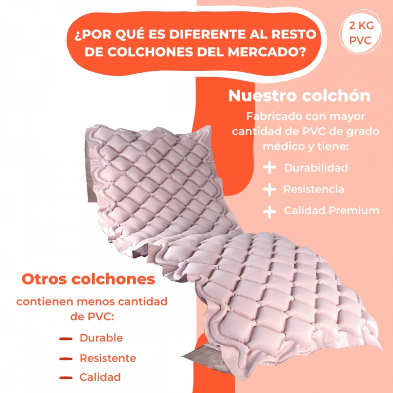 SEGURIDAD: está fabricado con PVC de grado médico de máxima calidad y material ignífugo por lo que este colchón de celdas de aire aporta más confianza al paciente