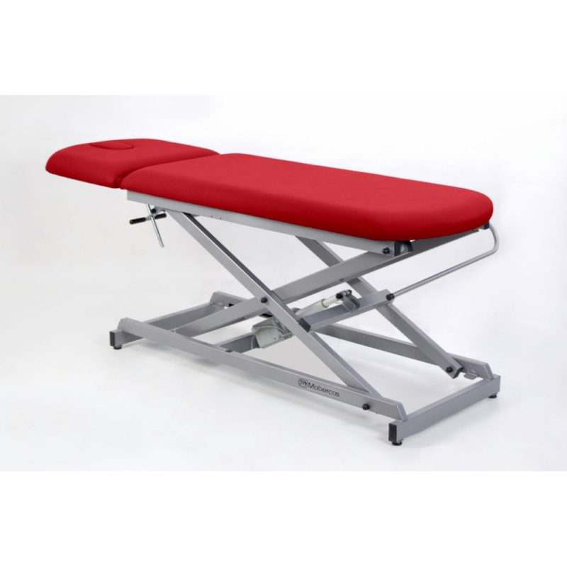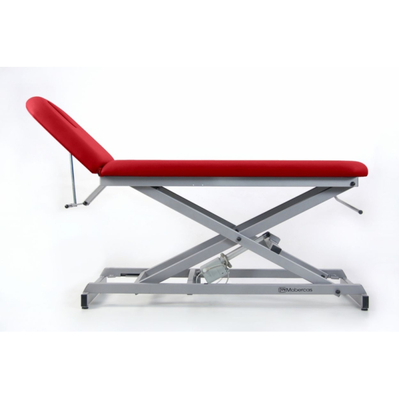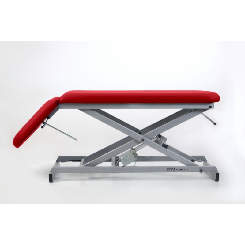 Camilla de reconocimiento eléctrica de 2 secciones, con subida recta sin desplazamiento lateral, portarrollos y tapón facial.