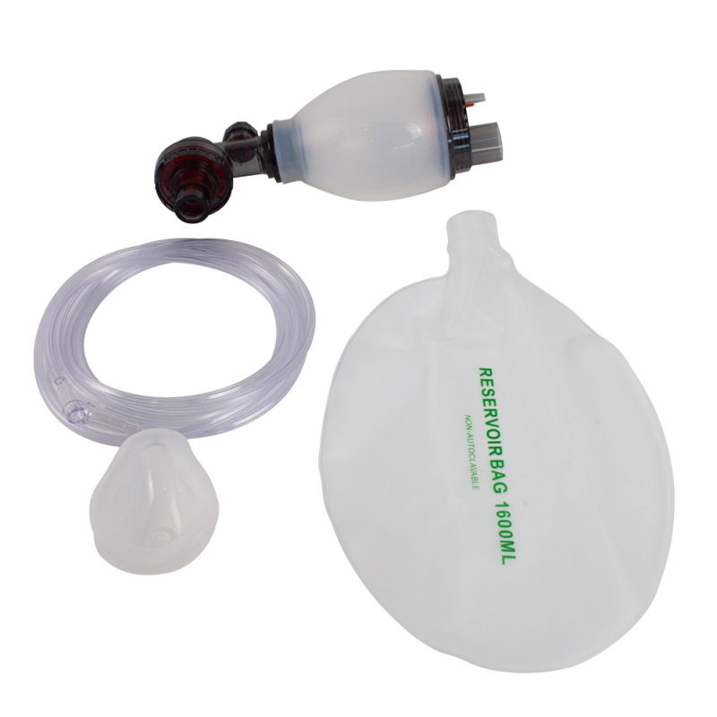 Resucitador manual hecho de material de silicona. Disponible para adultos, pediátrico y neonatal