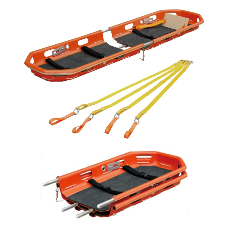 Incluye 4 eslingas especiales, muy útiles para levantar y transportar en helicóptero. Dispone de un mecanismo de fijación para los pies ajustable. Dispone de 8 amplios asideros de sujeción, además de 3 cinturones de sujeción y un colchón.