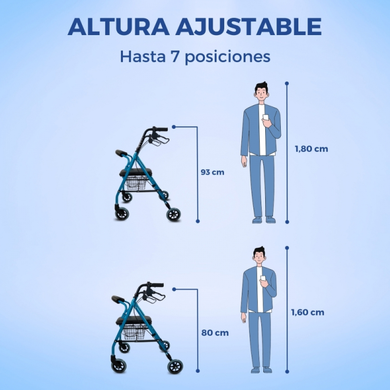 REGULABLE: para garantizar la máxima adaptación y comodidad en su uso, este andador se regula dependiendo de la altura del usuario.