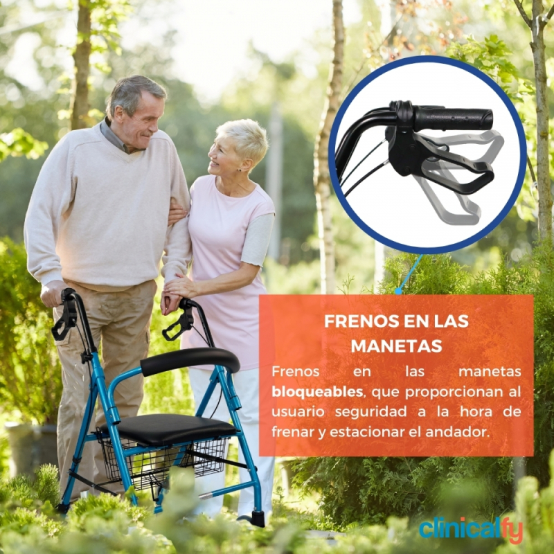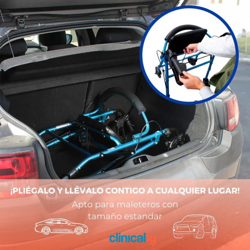 Andador ortopédico | Plegable | Frenos de maneta | 4 ruedas | Asiento y respaldo | TURIA | Clinicalfy
