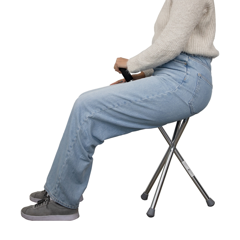 La pausa que aporta este bastón con asiento es necesaria para que la persona se recupere del cansancio y termine su recorrido.
