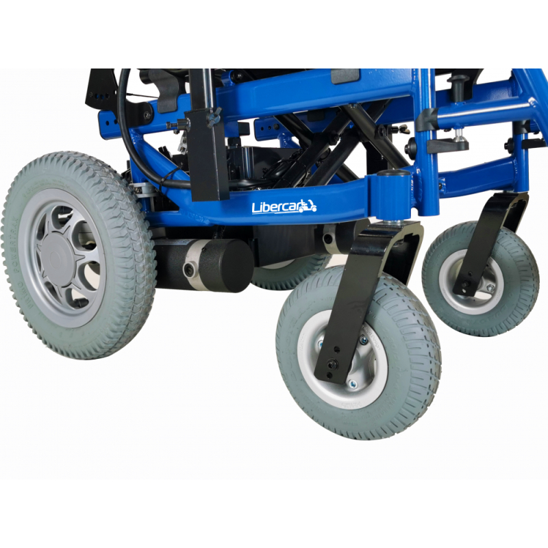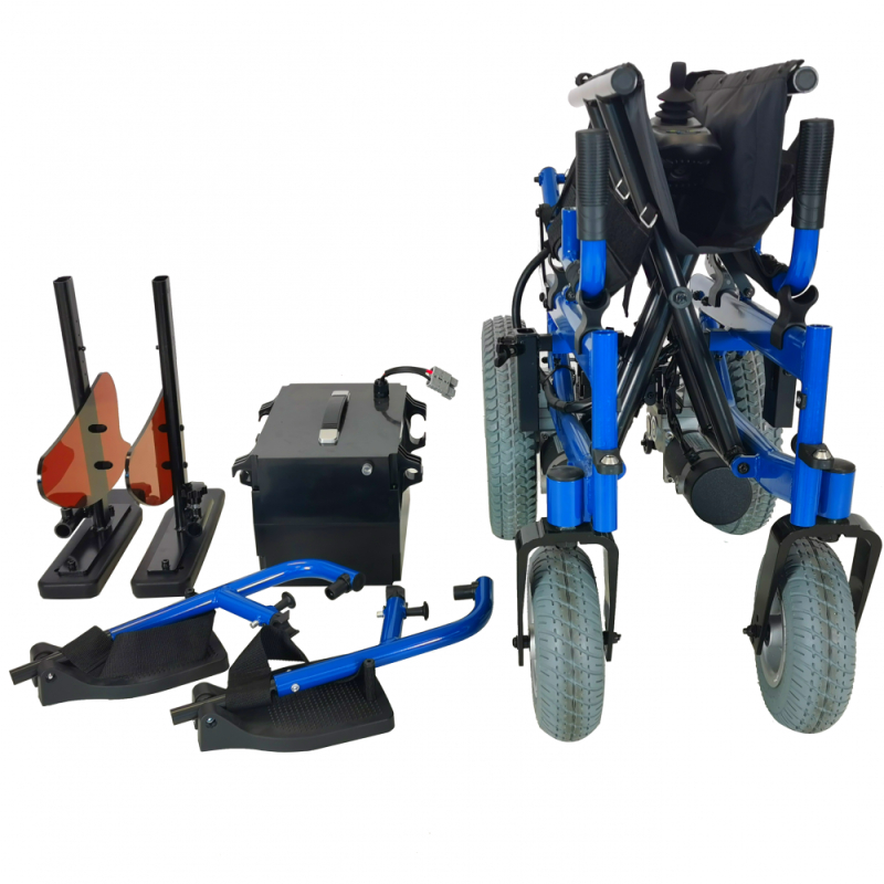 Silla de ruedas eléctrica | Desmontable | Respaldo reclinable | 2 baterías 36 Ah cada una | Azul | Emblema | Libercar