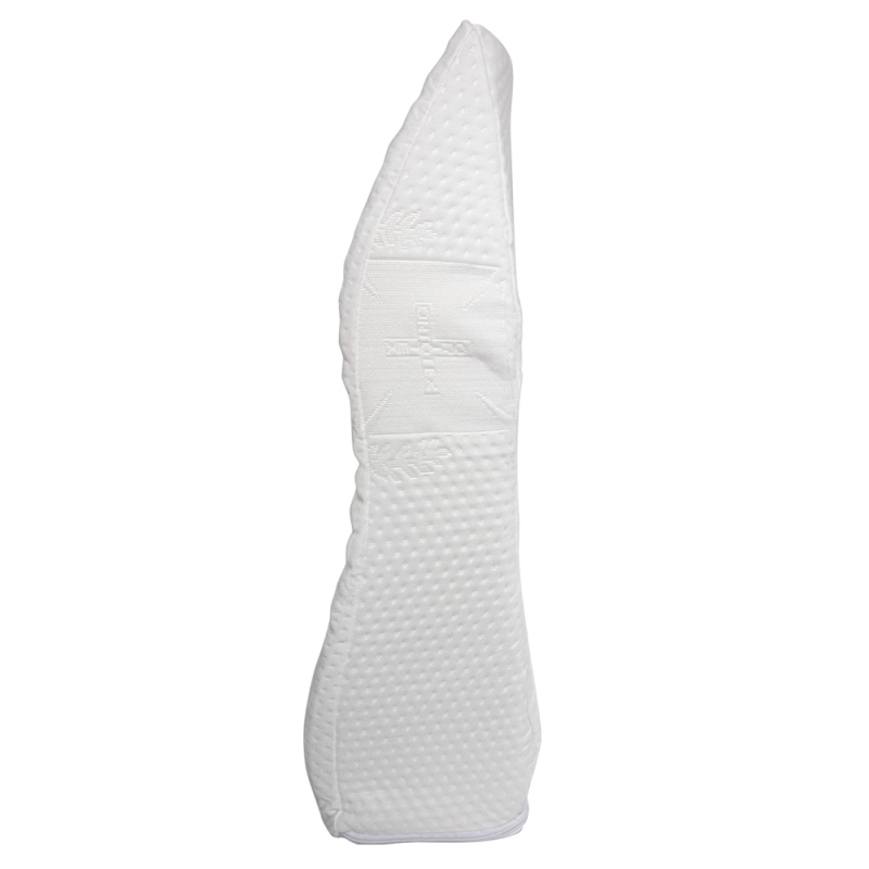 Las dimensiones específicas de esta almohada para las piernas hacen de ella una herramienta perfecta para aliviar todos los dolores y la pesadez de los miembros inferiores: dolor de espalda, de rodillas e incluso las piernas hinchadas