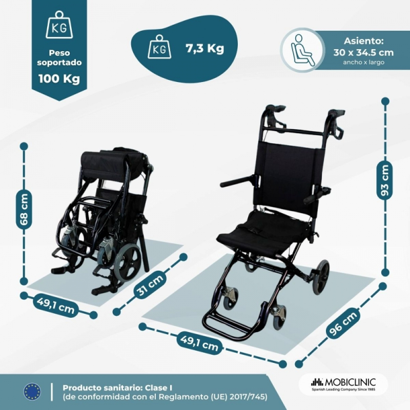 PLEGABLE: esta silla de ruedas plegable fabricada en aluminio para hacer un desplazamiento ligero sin perder en ningún momento la estabilidad.