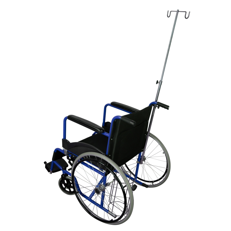 El porta goteros es un accesorio que permite al usuario colocar el gotero en la silla de ruedas. La altura es ajustable de 77 a 142 cm, para que el usuario la fije según sus necesidades. Además, la parte alta donde se apoyan los goteros tiene 24 cm.