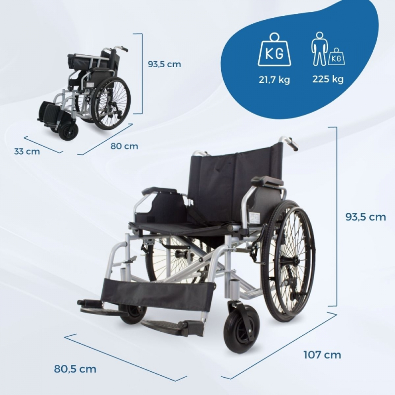 Silla de ruedas bariátrica | Ancho 60cm | Hasta 225kg | Ruedas extraíbles | Antivuelco | Autopropulsable | Plus 225 | Mobiclinic Antonio j. La recomiendo 18/05/2023 |