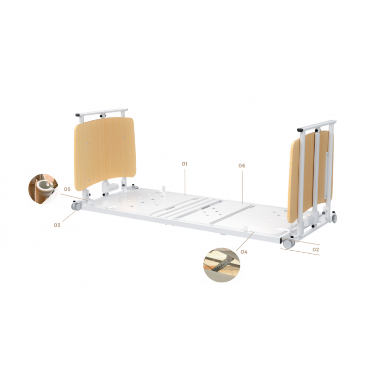 Destaca por su posición ultra baja de 70mm (hasta 650mm) desde el soporte del colchón hasta el suelo, reduciendo el riego de lesiones en caso de una caída.