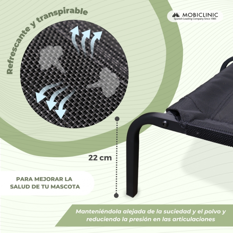 Cama elevada para mascotas | Aislante | 122 x 71 x 21 cm | Máx. 60 kg | Ligera | Resistente | Negra | Cleo | Mobiclinic Toni . Diseño inteligente, la elevación proporciona aislamiento y comodidad 13/11/2023 |