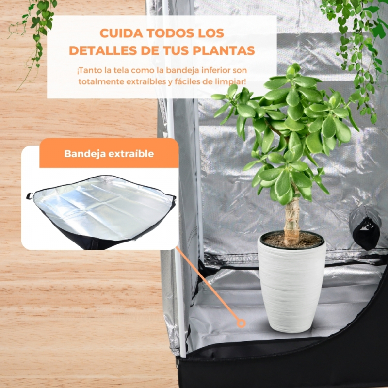 Armario de cultivo | Impermeable | Negro| Nylon | Carga max.28 kg | Fondo desmontable | Barras de sujeción |Growbox | Mobiclinic