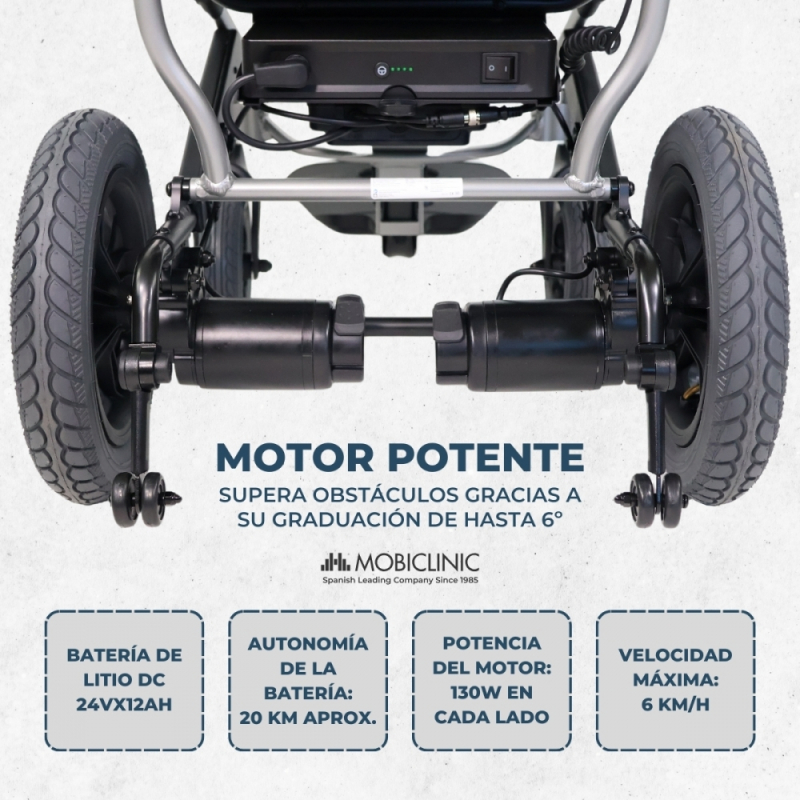 Silla de ruedas eléctrica | Plegable | Aluminio | Modo dual | Autonomía 20 km | Hasta 100 kg| Verona | Mobiclinic