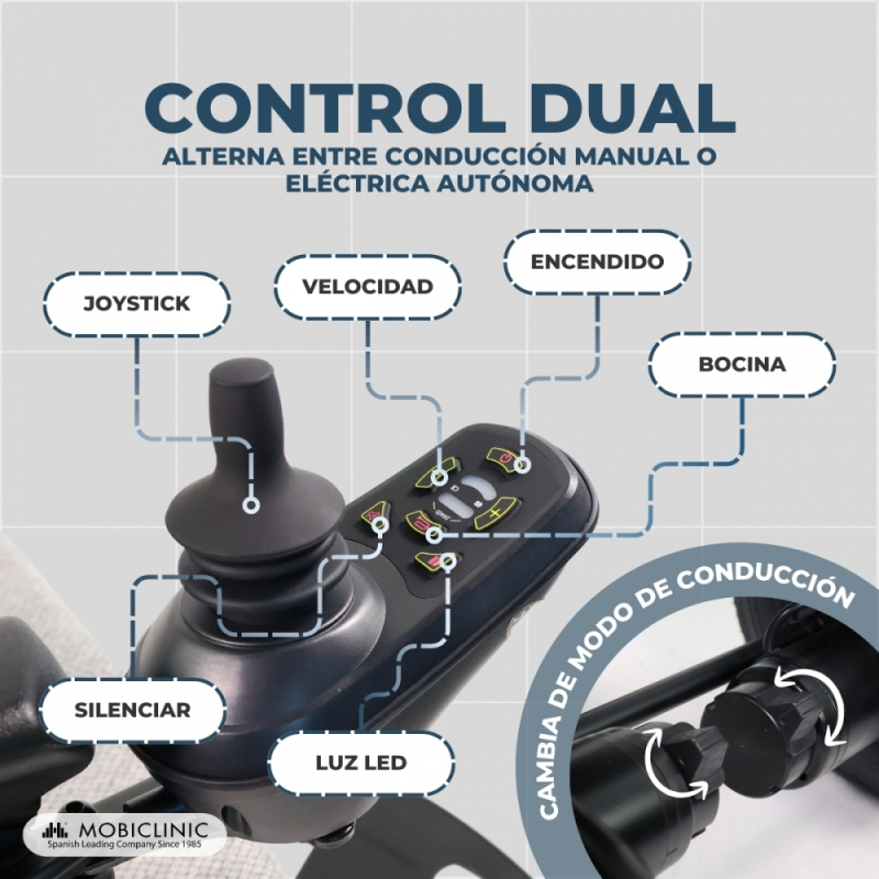 Su diseño innovador se adapta a tu estilo de vida con un modo dual que permite una conducción manual o de potencia (para que el acompañante, si fuera necesario, pueda impulsarla) y eléctrica autónoma, brindando la flexibilidad que necesaria en cada momento.
