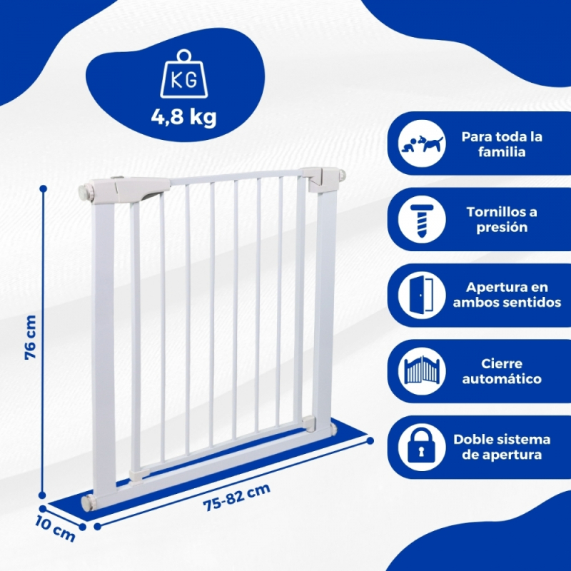ADAPTABILIDAD: Diseñada para adaptarse a espacios desde 75 a 82 cm esta puerta para escalera proporciona flexibilidad y versatilidad para satisfacer tus necesidades específicas.