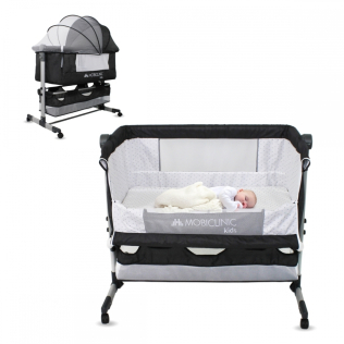 Cuna 3 en 1 | Colecho | Balancín | 3 alturas ajustables | Mosquitera y cesta | Con colchón | Ruedas 360º | Night | Mobiclinic