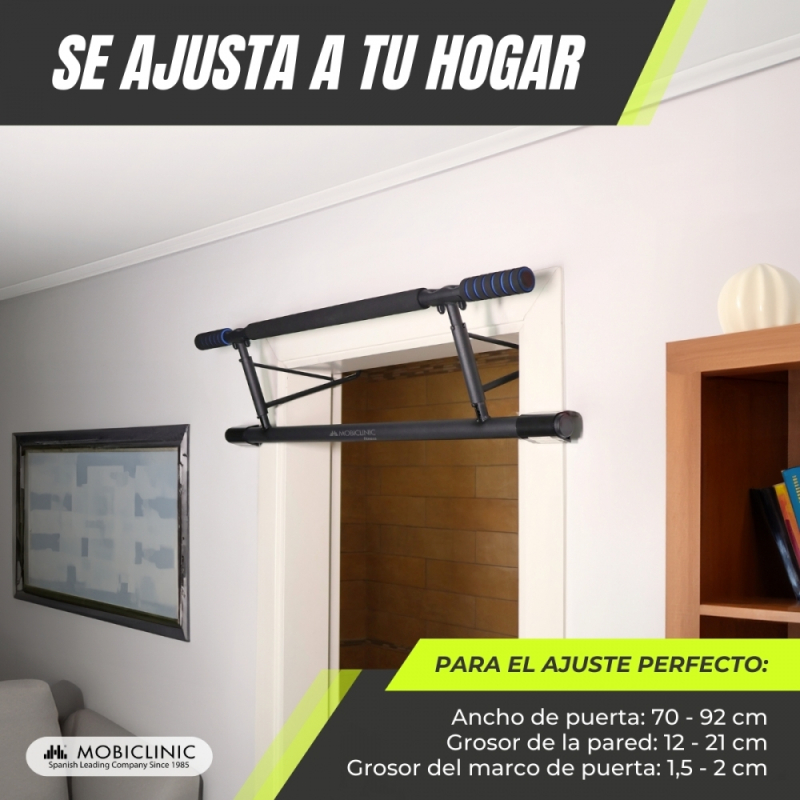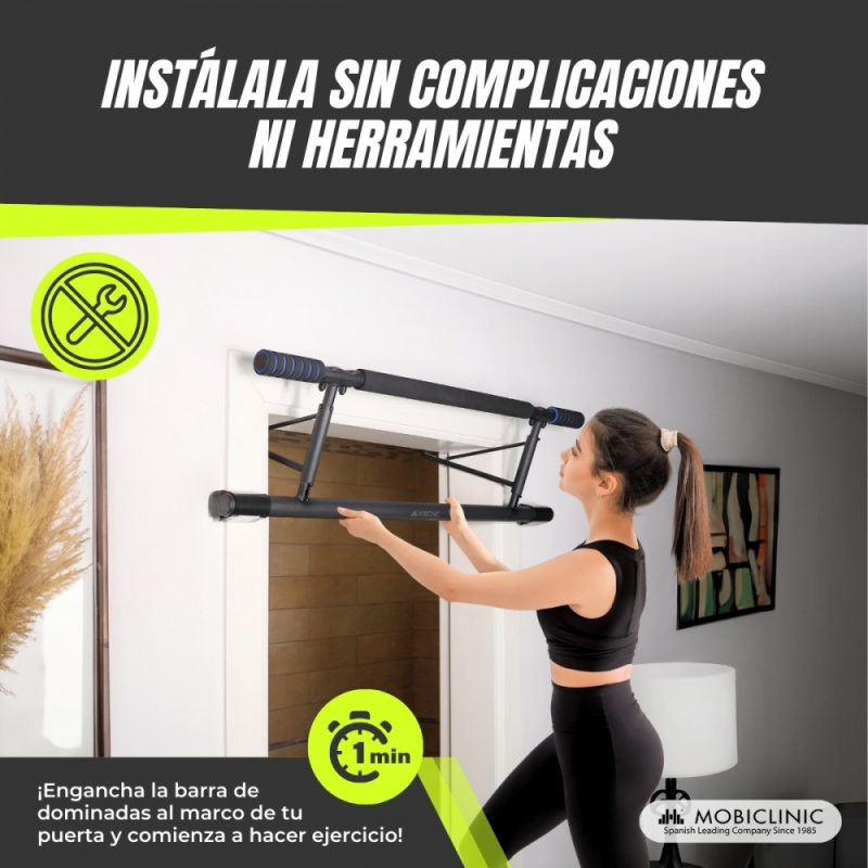 Barra de Dominadas |Máx 200kg| Ajustable|Hierro Revestido y EVA|Sin Herramientas|Elásticos Incluidos|Negro y Azul |K5|Mobiclinic Luis . Robusta y fácil de montar. 17/10/2024 |