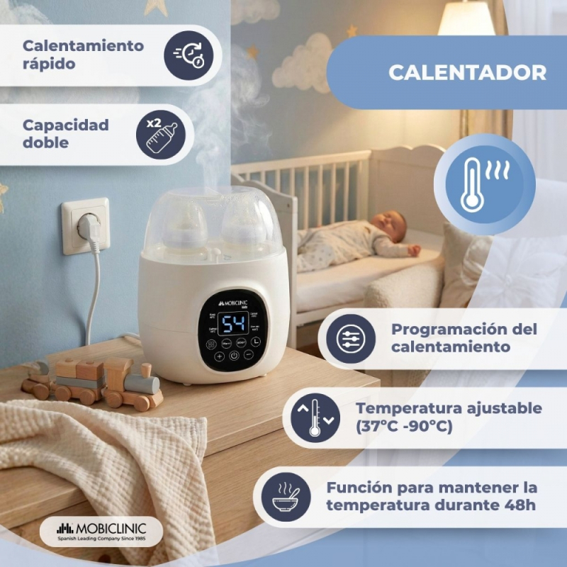Calienta biberones doble | 6 en 1 | Esterilizador | Temperatura ajustable | Programable | Compacto | Bibidu | Mobiclinic